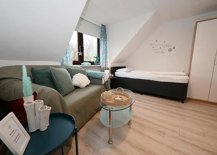 ビュ-ズムでの休暇を楽しむには,Sturmflutenwelt Blanker Hansからたった1.2kmで,Museumshafen Busumから徒歩で11分の寝室1室のArche Noah - Haus Am Meer Wohnung Meer ビュ-ズムがあります.